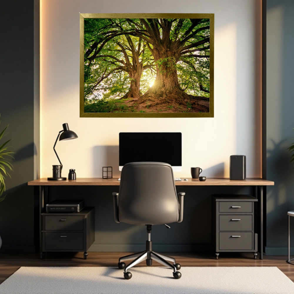 Ideal para telas em chassi de madeira, seu design em formato de escada proporciona um espaçamento elegante entre a tela e a moldura, sem uso de vidro, valorizando a textura da obra.